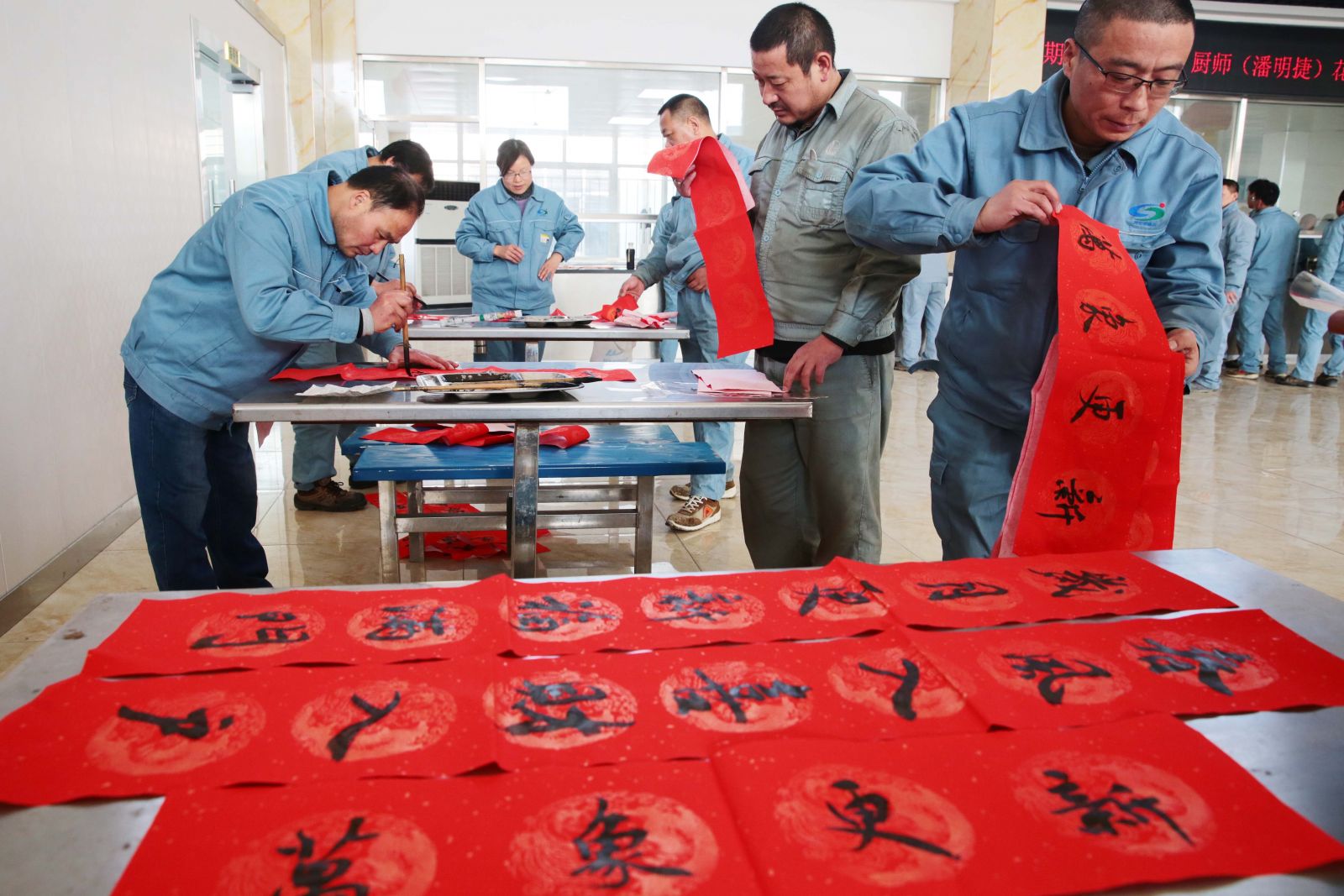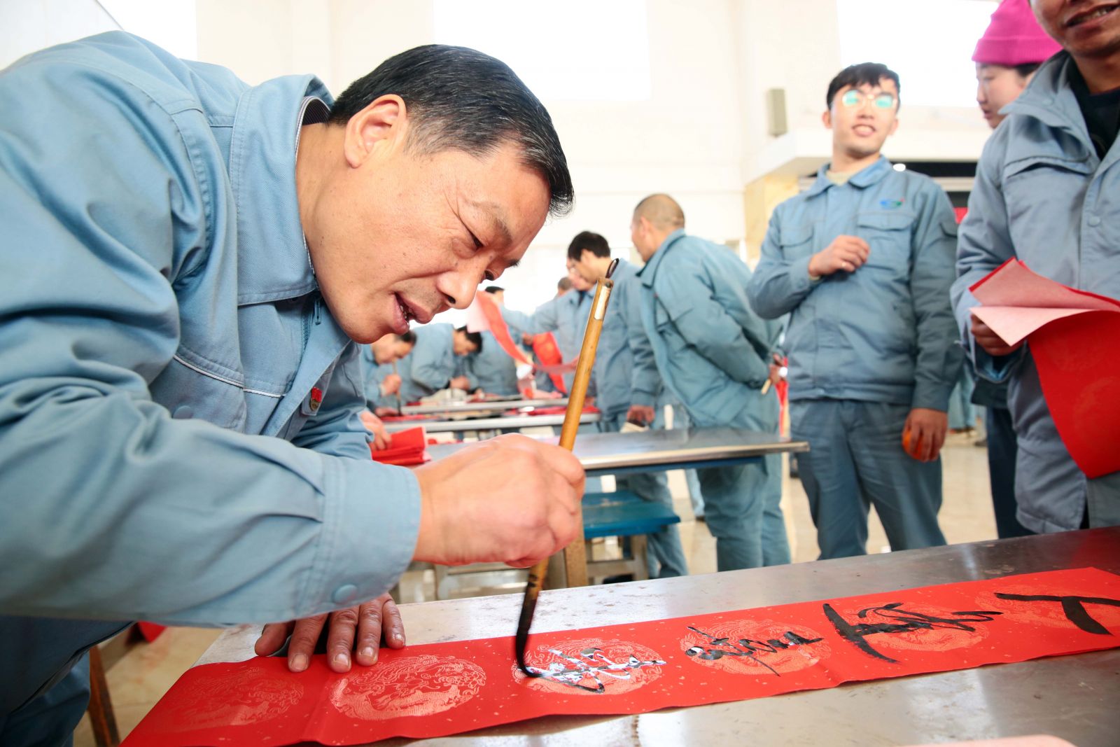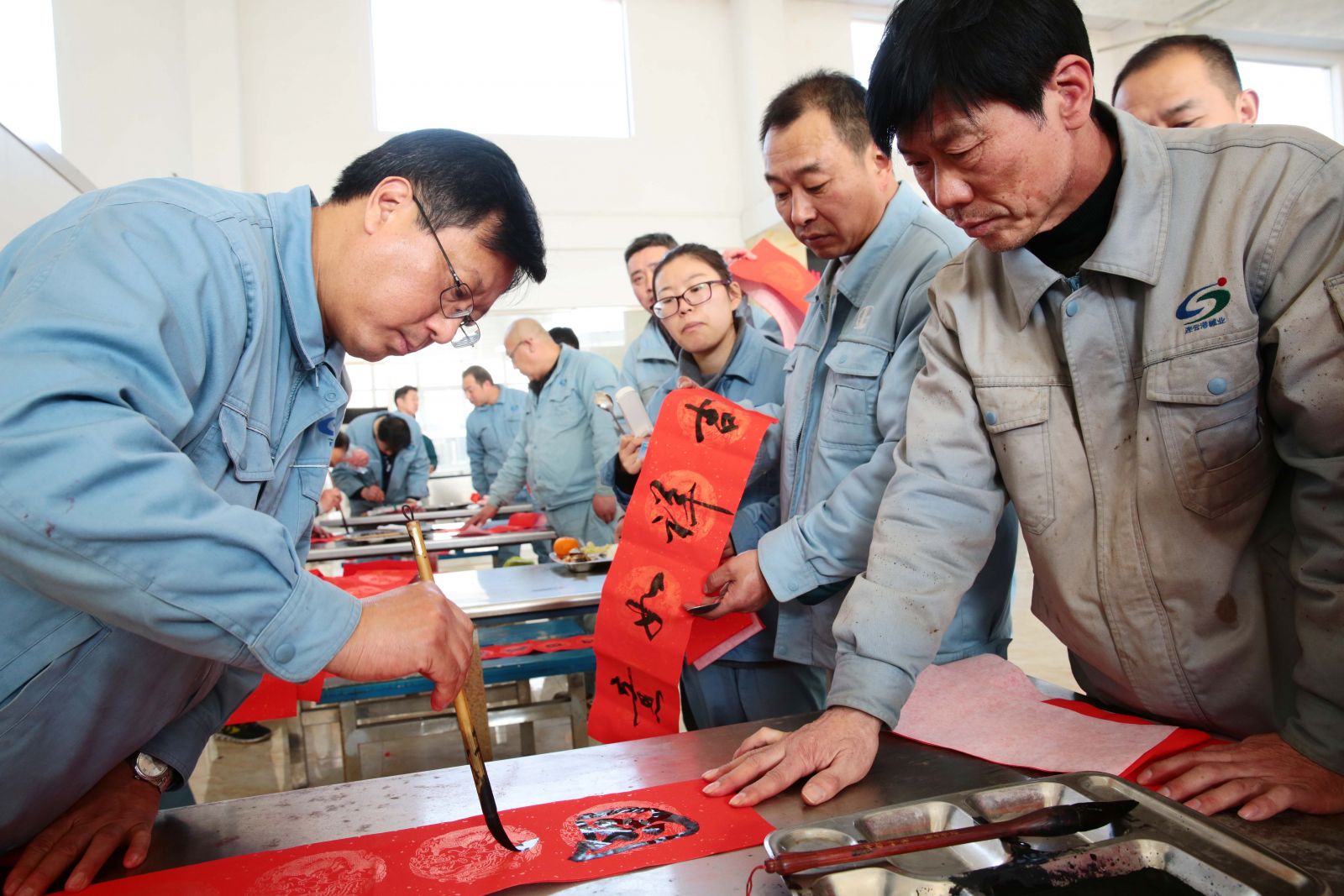為弘揚(yáng)中華傳統(tǒng)文化,表達(dá)對(duì)廣大職工的新春祝福,1月24日,公司工會(huì)在職工食堂開展“義務(wù)寫春聯(lián) 揮毫送祝福”活動(dòng)。
