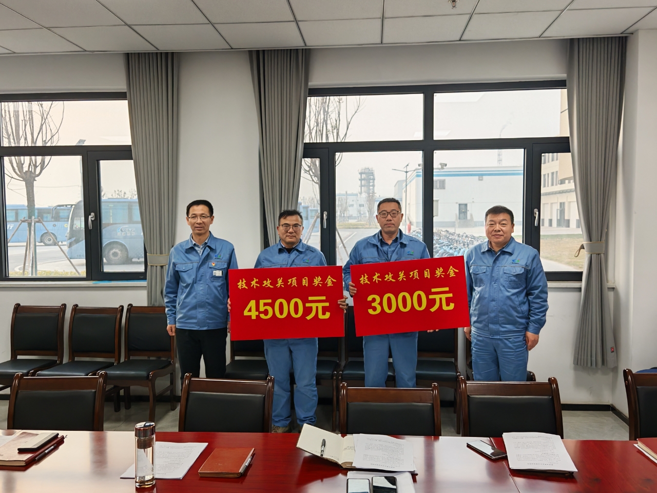 為表彰先進、樹立榜樣,進一步激發(fā)全體員工創(chuàng)新創(chuàng)效的積極性與主動性,12月19日下午,公司對在自主攻關(guān)優(yōu)化項目中取得突出成績的孔祥昶項目團隊和李征徐項目團隊進行表彰。公司黨委書記、董事長姜自成,公司總經(jīng)理、黨委副書記、副董事長延立強為其頒發(fā)了技術(shù)攻關(guān)項目獎金。
