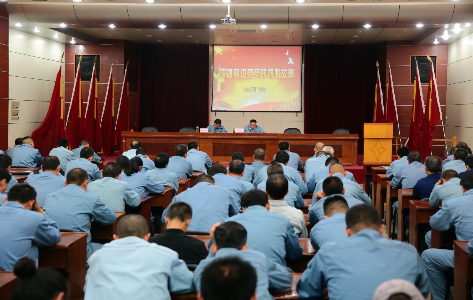 為貫徹落實市委“不忘初心,牢記使命”主題教育要求,引導(dǎo)廣大黨員守初心、擔使命,10月10日下午,公司在第一會議室舉辦了“初心分享會”,邀請先進模范田恒余講述初心故事。公司黨委副書記鈕維社主持會議,公司領(lǐng)導(dǎo)、黨支部書記及黨員代表120余人參加了此次大黨課。