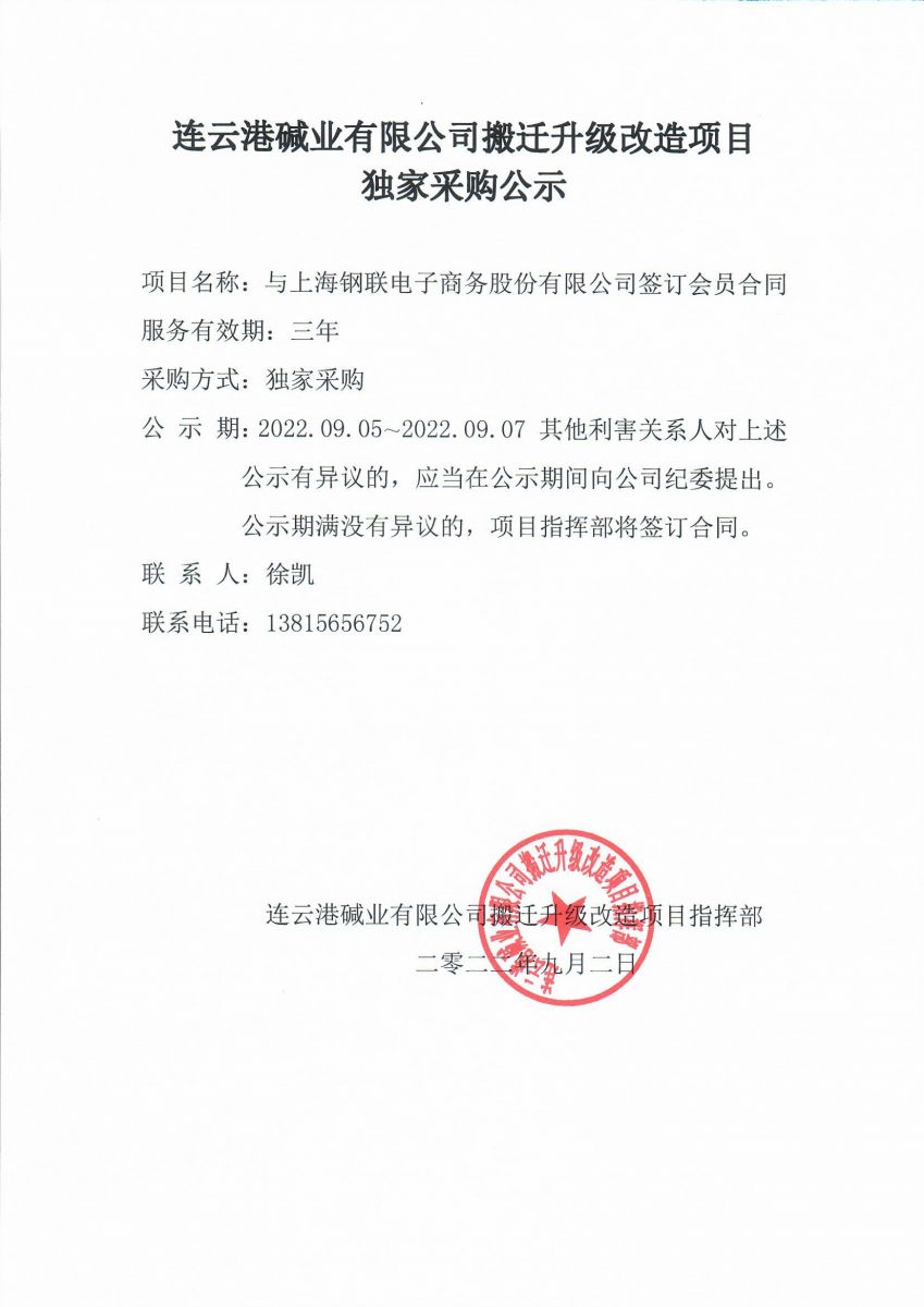 搬遷升級改造項(xiàng)目獨(dú)家采購公示