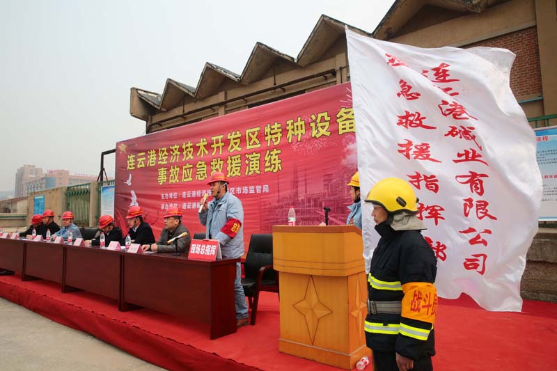 為預(yù)防和減少生產(chǎn)安全事故的發(fā)生,檢驗連云港開發(fā)區(qū)市場監(jiān)管局應(yīng)急預(yù)案與企業(yè)應(yīng)急預(yù)案的銜接性,提高應(yīng)對突發(fā)事故的組織領(lǐng)導(dǎo)、協(xié)調(diào)配合、快速反應(yīng)、應(yīng)急處置能力。同時檢驗公司應(yīng)急預(yù)案編制的實用性、可操作性,3月22日,連云港經(jīng)濟技術(shù)開發(fā)區(qū)市場監(jiān)管局聯(lián)合堿業(yè)公司組織開展特種設(shè)備事故應(yīng)急演練。市質(zhì)監(jiān)局副局長宋志飚、開發(fā)區(qū)市場監(jiān)管局局長殷元、公司總經(jīng)理、黨委副書記李清菊等現(xiàn)場觀摩演練。