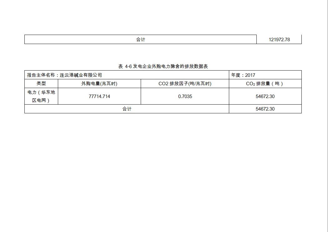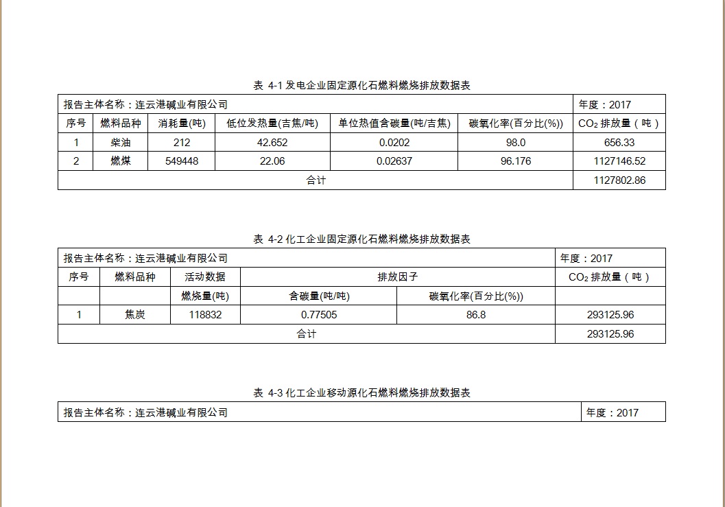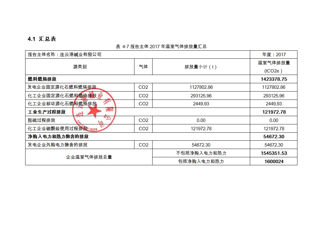 連云港堿業(yè)有限公司2017年度溫室氣體排放報(bào)告