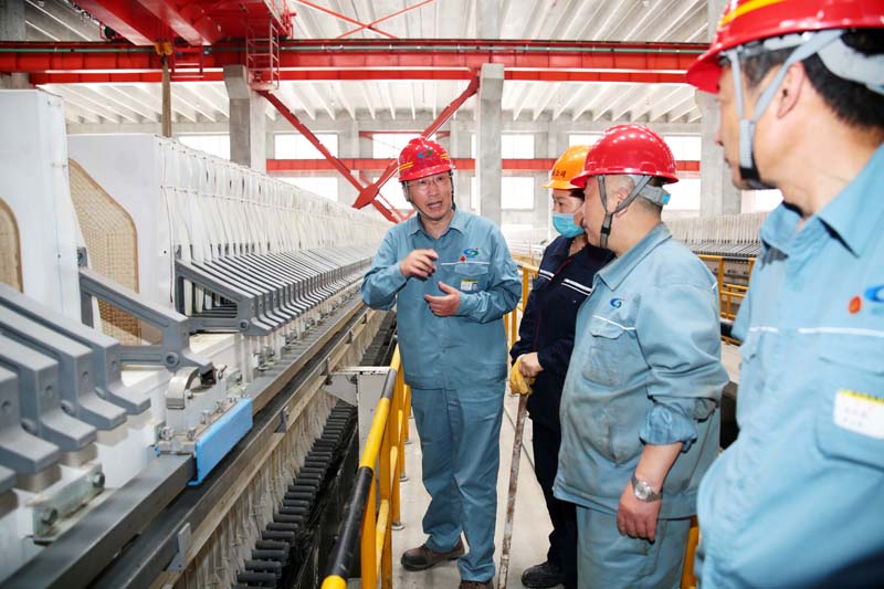 5月16日上午,公司黨委書(shū)記、董事長(zhǎng)張衛(wèi)民,黨委副書(shū)記、總經(jīng)理李清菊,黨委委員、副總經(jīng)理黃建華,黨委委員、副總經(jīng)理焦旺盛等一行到渣處理車(chē)間指導(dǎo)工作。