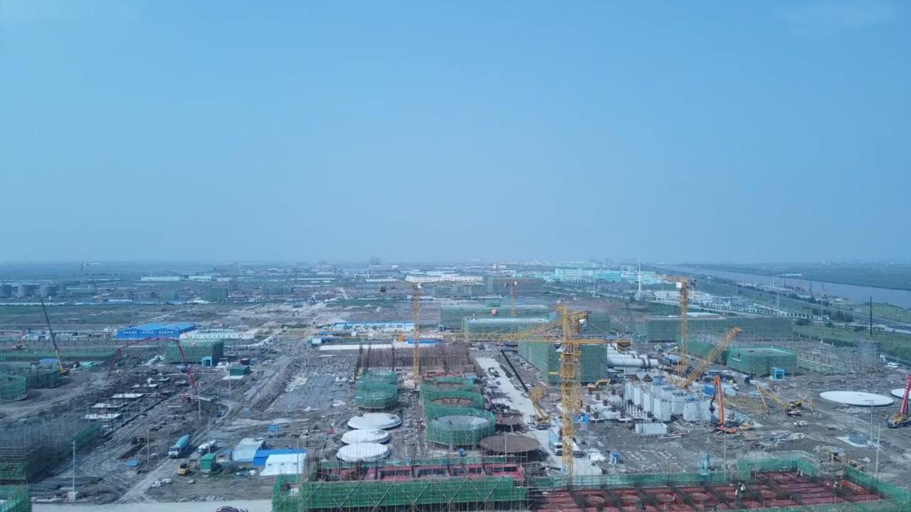 ⑴聯(lián)堿一標(biāo)段101b聯(lián)堿辦公樓屋面女兒墻拆模養(yǎng)護(hù);152中心控制室屋面鋼結(jié)構(gòu)進(jìn)場,砌體施工;151化驗(yàn)中心四層支撐架搭設(shè);340機(jī)電儀維修廠房鋼結(jié)構(gòu)工廠預(yù)制,砌體施工;510重堿車間V51301A設(shè)備中心筒與溢流箱合攏,氨II澄清桶安裝,母液I澄清桶安裝.管廊基礎(chǔ)防腐回填;532重灰段深基坑回填、水池養(yǎng)護(hù);280b換熱站屋面鋼結(jié)構(gòu)工廠預(yù)制。