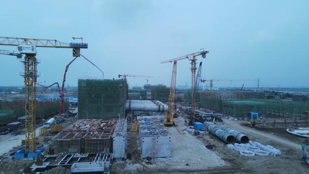 ⑸合成氨二標段271原料煤儲運破碎樓三層澆筑;#1轉(zhuǎn)運站五層腳手架搭設(shè),鋼筋綁扎;#2轉(zhuǎn)運站三層腳手架、模板拆除,四層腳手架搭設(shè),鋼筋綁扎,支模;汽車卸煤區(qū),煤筒倉外側(cè)土方土方挖取,圍檁安裝;820合成氨循環(huán)水站清凈廢水池鋼板樁拔除;塔下水池1支撐架搭設(shè),鋼筋綁扎;塔下水池2支撐架搭設(shè),對拉螺栓割除;吸水池1基坑開挖準備;711煤漿制備二層腳手架搭設(shè),梁板柱支模,鋼筋綁扎,埋件安裝;762壓縮機廠房基礎(chǔ)短柱防腐;剩余設(shè)備基礎(chǔ)鋼筋綁扎,模板支設(shè);763空分后備系統(tǒng)上部結(jié)構(gòu)鋼筋綁扎,預(yù)埋件安裝,支模;764儀表空壓站基礎(chǔ)墻防腐;831空分變電所首層結(jié)構(gòu)鋼筋綁扎,埋件安裝,支模;761冷箱基礎(chǔ)冷箱設(shè)備帶板拼接施工;膨脹機房上部結(jié)構(gòu)鋼筋綁扎預(yù)埋螺栓安裝;712氣化框架立柱腳手架搭設(shè),鋼筋綁扎;灌注樁施工;樁基大小應(yīng)變檢測;基坑開挖準備;塔吊附近承臺基坑回填;842空分機柜間板墻鋼筋綁扎;713渣水處理集渣池支撐架搭設(shè),鋼筋綁扎,支模;設(shè)備基礎(chǔ)錨固鋼筋焊接。
