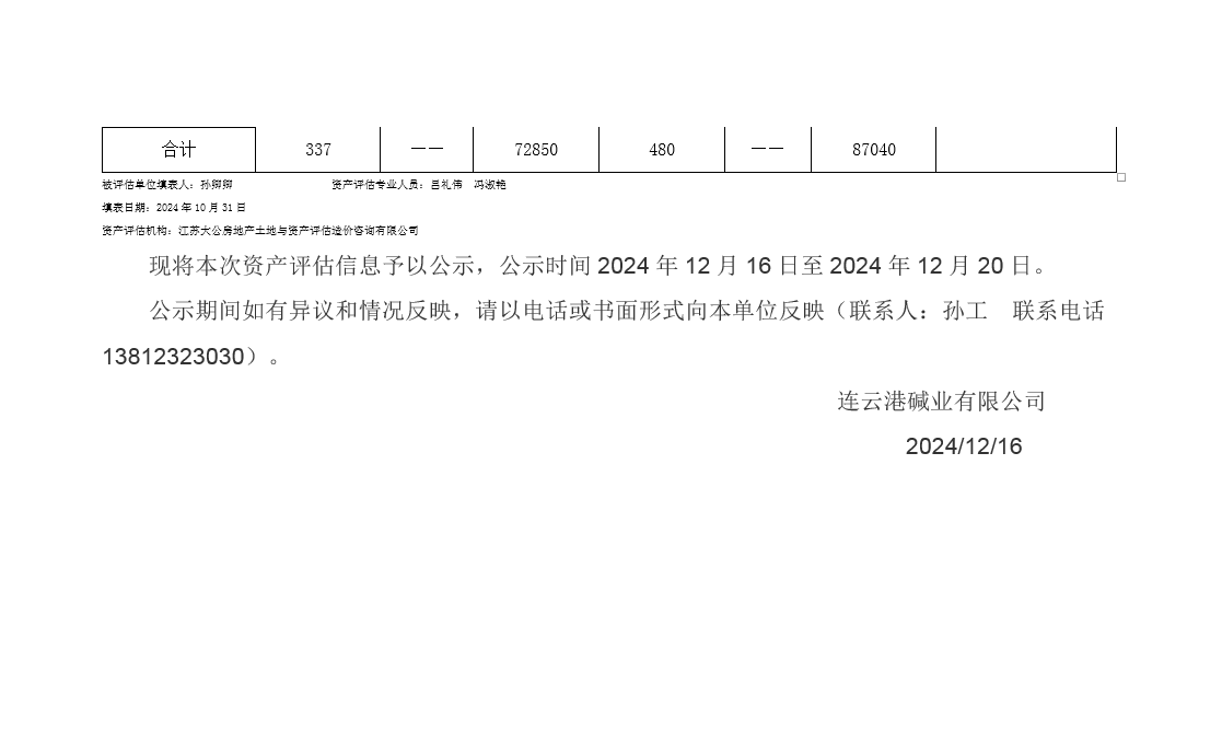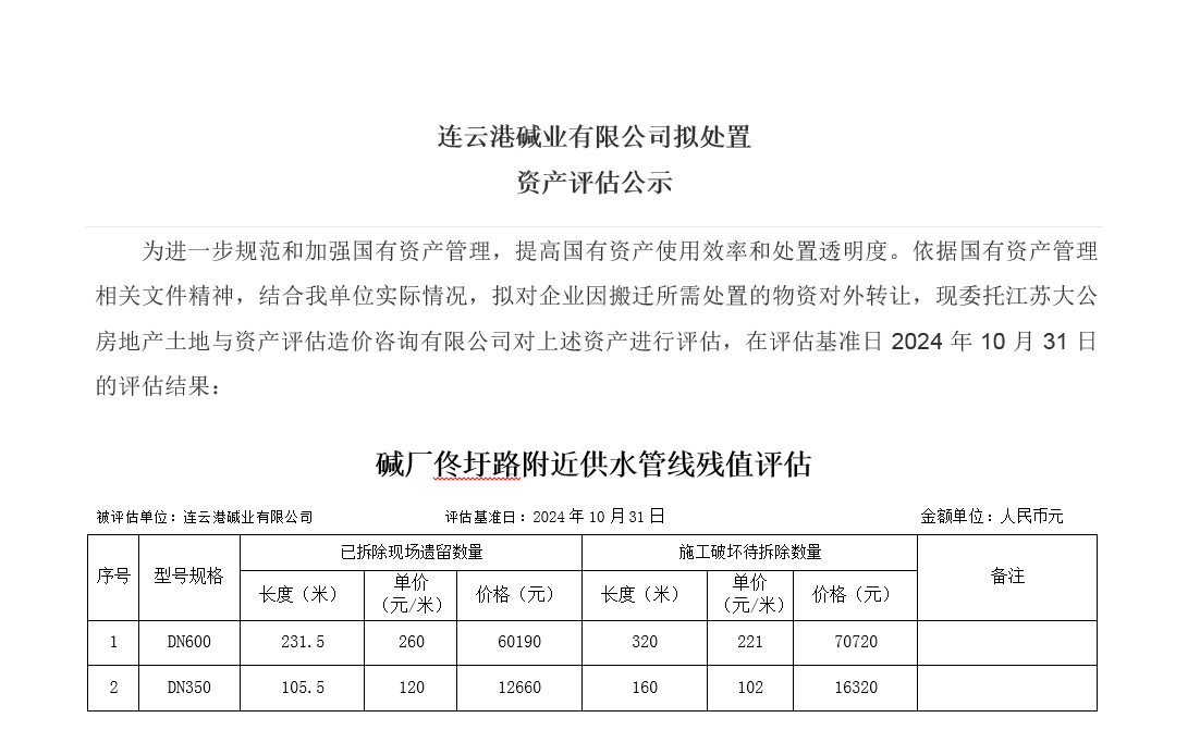 連云港堿業(yè)有限公司佟圩路附近供水管線資產(chǎn)評(píng)估公示