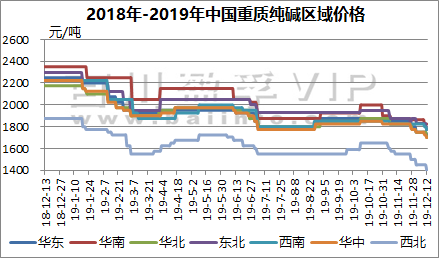 百川資訊及純堿公平貿(mào)易工作站:(2019.12.6-12.12)重質(zhì)純堿送到價格走勢圖(注:西北出廠)
